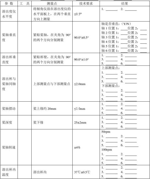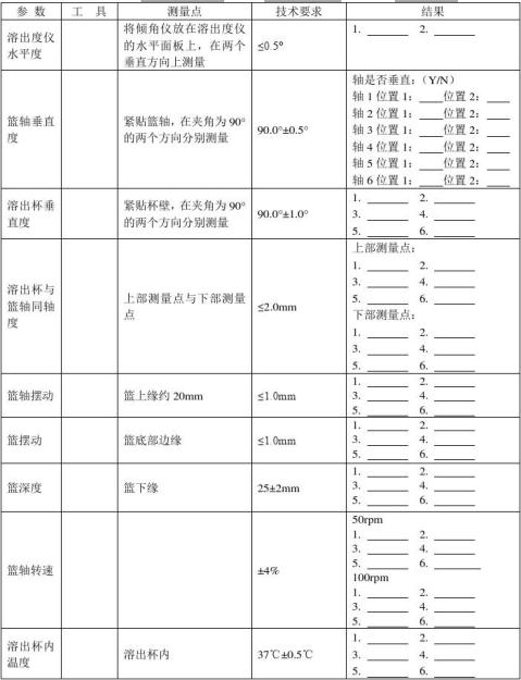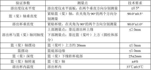 六、溶出度儀機(jī)械驗(yàn)證參數(shù)列表