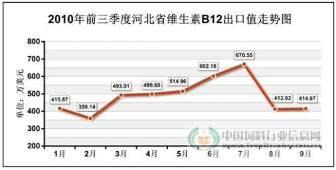 圖(1)2010年前三季度河北省維生素B12出口值走勢(shì)圖