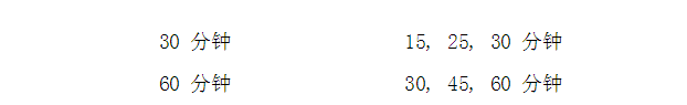 崩解儀的6個管子中,按下列時間表檢查崩解情況。